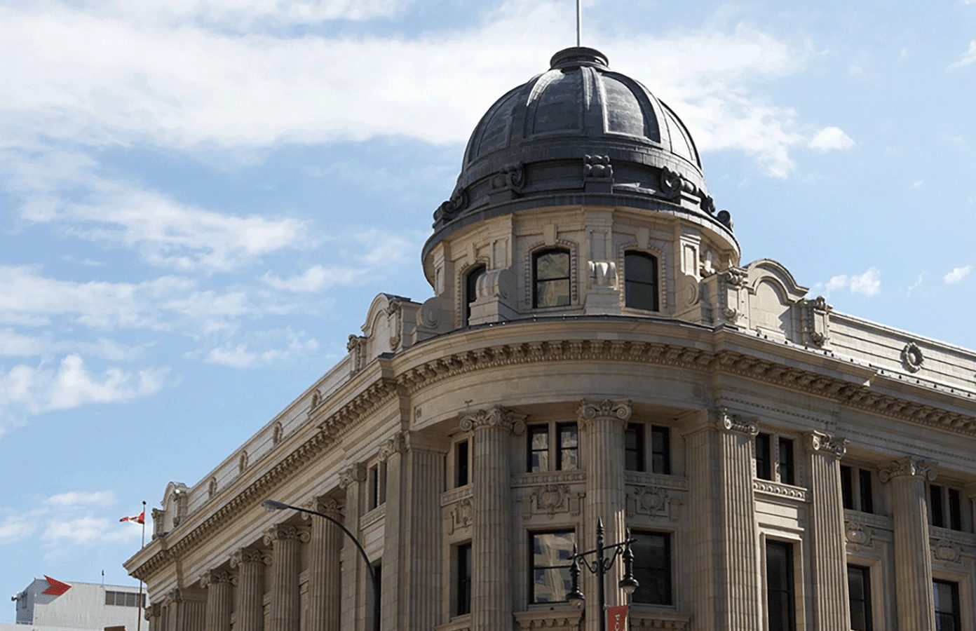 The beautiful architecture of the historical A.A. Heaps Building in Winnipeg, Manitoba, was designed by Darling & Pearson in 1910 to be a reflection of the “free renaissance” style. These architects were well known as some of the best bank architects in the country. The Bank of Nova Scotia was well aware of their talents when they chose them to design this Winnipeg landmark. The terra cotta façade and dome of the building hides a frame of steel, making the building incredibly sturdy.