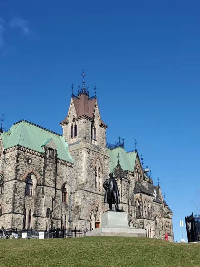 The Office of the Prime Minister and Privy Council, located across from the Parliament Buildings, is one of the finest federal examples of a Second Empire office building.