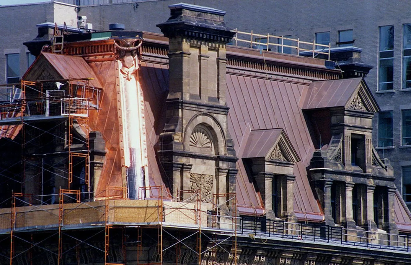 When the project was completed, the entire mansard roof area on four elevations was restored using 20-ounce copper sheets. This new stamped sheet metal roof will protect the Office of the Prime Minister and Privy Council for years to come, providing the setting for some of the most important political events and decisions in Canada’s future. To learn more about this sheet copper roofing and decorative sheet metal project and how we preserved the Canadian Parliament building history, take a look at the images below: