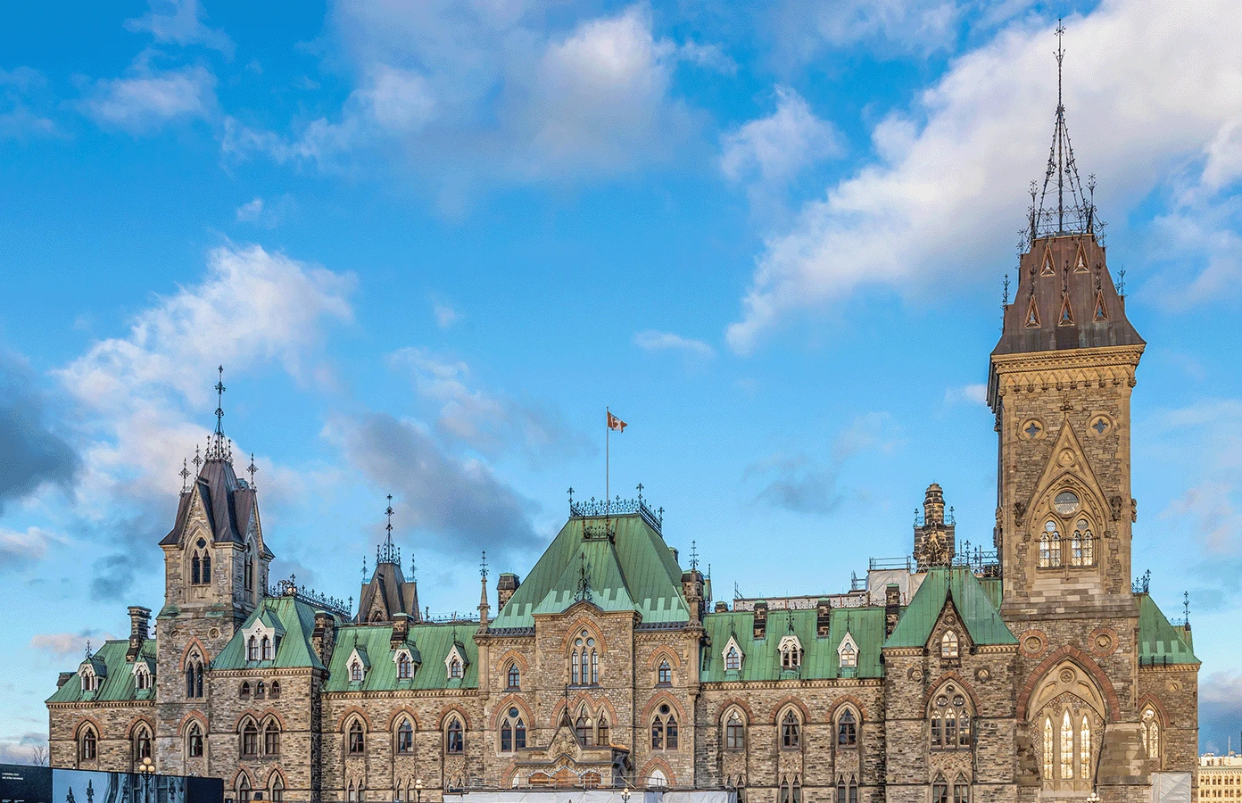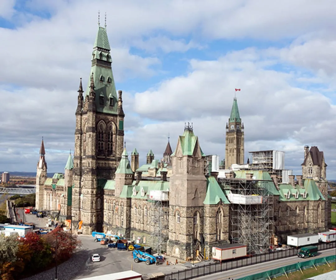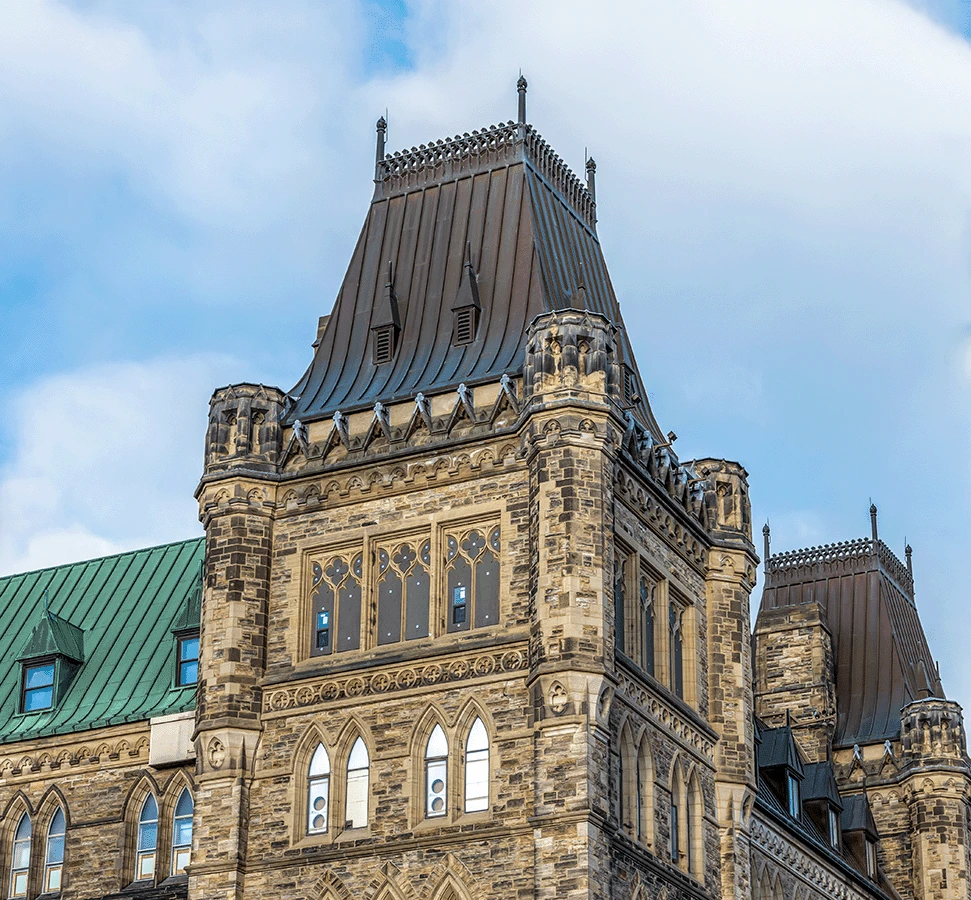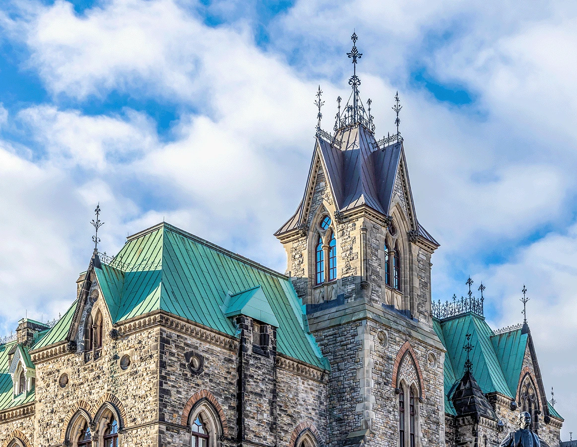 The West Block, constructed between 1859 and 1865, is a Classified Federal Heritage Building listed on the Canadian Register of Historic Places. The four-sided building underwent a massive renovation to accommodate a change in usage. The interior quadrangle of the West Block was infilled to provide a temporary home for the House of Commons until the Centre Block restoration was complete. We partnered with PCL Constructors of Ottawa to restore the roof on the 1878 MacKenzie Tower and surrounding area. The MacKenzie Tower is the most ornate part of the West Block. It is one of the later additions to the West block and was designed by Prime Minister Alexander MacKenzie.