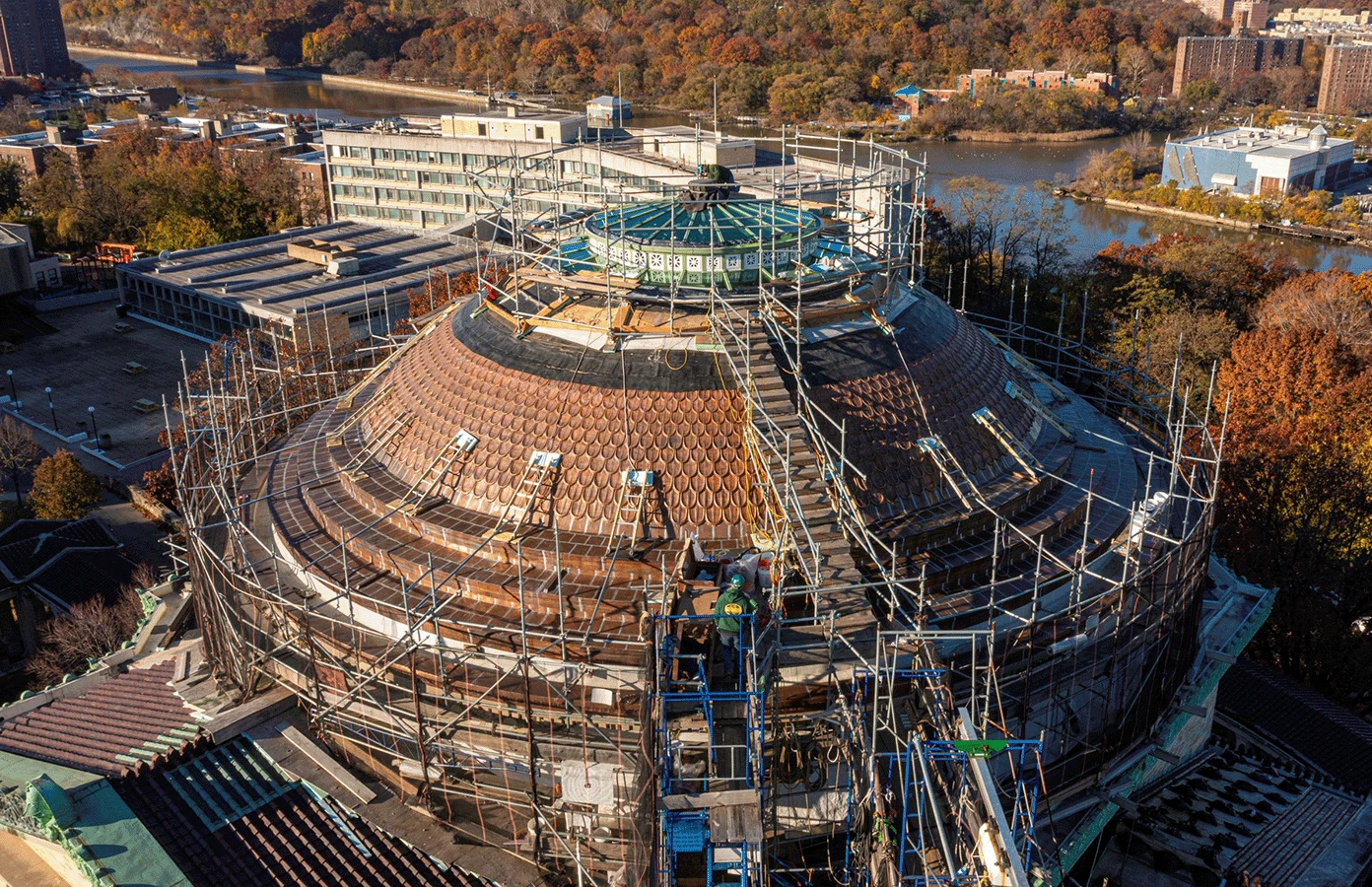 The Gould Memorial Library was once described as the most famous New York building you’ve never heard of. Designed by prominent architect Stanford White as part of New York University’s Brooklyn Campus and built in 1897-1899, the official New York Landmark is listed on the American National Register of Historic Places. Inspired by the Pantheon in Rome it is now a part of Bronx Community College (BCC) and is considered one of White’s masterpieces, showcasing the true history of the Gould Memorial Library. However, by 2016, the stunning Beaux Arts building was on The Preservation League of New York State’s “Seven to Save” endangered properties list. Funding was finally secured to make significant restoration, and we worked closely with primary contractor Nicholson & Gallaway of New York on reproducing custom exterior copper shingles for the 70-foot dome cupola as well as other decorative elements. All materials produced for the Gould Memorial Library roof restoration had to adhere to the U.S. Secretary of the Interior's Standards and Guidelines for Rehabilitating Historic Buildings.