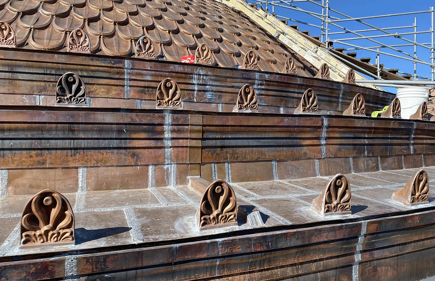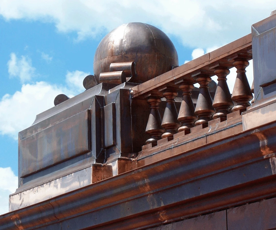 Depending on the application, our ornamental metal fabricators work with and fabricate the materials traditionally used in ornamental architecture : copper, stainless steel, brass, bronze, zinc, lead, aluminum and Corten steel (or weathered steel) employing time tested artisanal techniques together with new innovations in alloys, finishes and manufacturing.