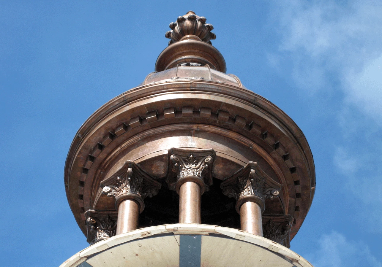 A domed roof, steeple or metal cupola is often the major focal point of a building. H&L has close to a century of expertise as ornamental metal fabricators in ensuring that these architectural features are built to last, and have the style and distinction they demand. Sheet metal, ornamental or decorative metal shingles or metal Spanish tiles are all variously employed as roofing materials depending on the project
